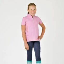 A great breathable short sleeved versatile top made from bi-stretch jersey fabric with sun protection factor 50+ and a peached outer. Featuring Comfort Dry Technology that will perform for you no matter what the weather providing moisture control for all day comfort. Mesh side panels, under sleeves and back yoke. The peached outer works to shed dirt, hay and horse hair, to keep you looking smart. A stand up collar with half zip placket, in a semi fitted style to offer a comfortable fit.